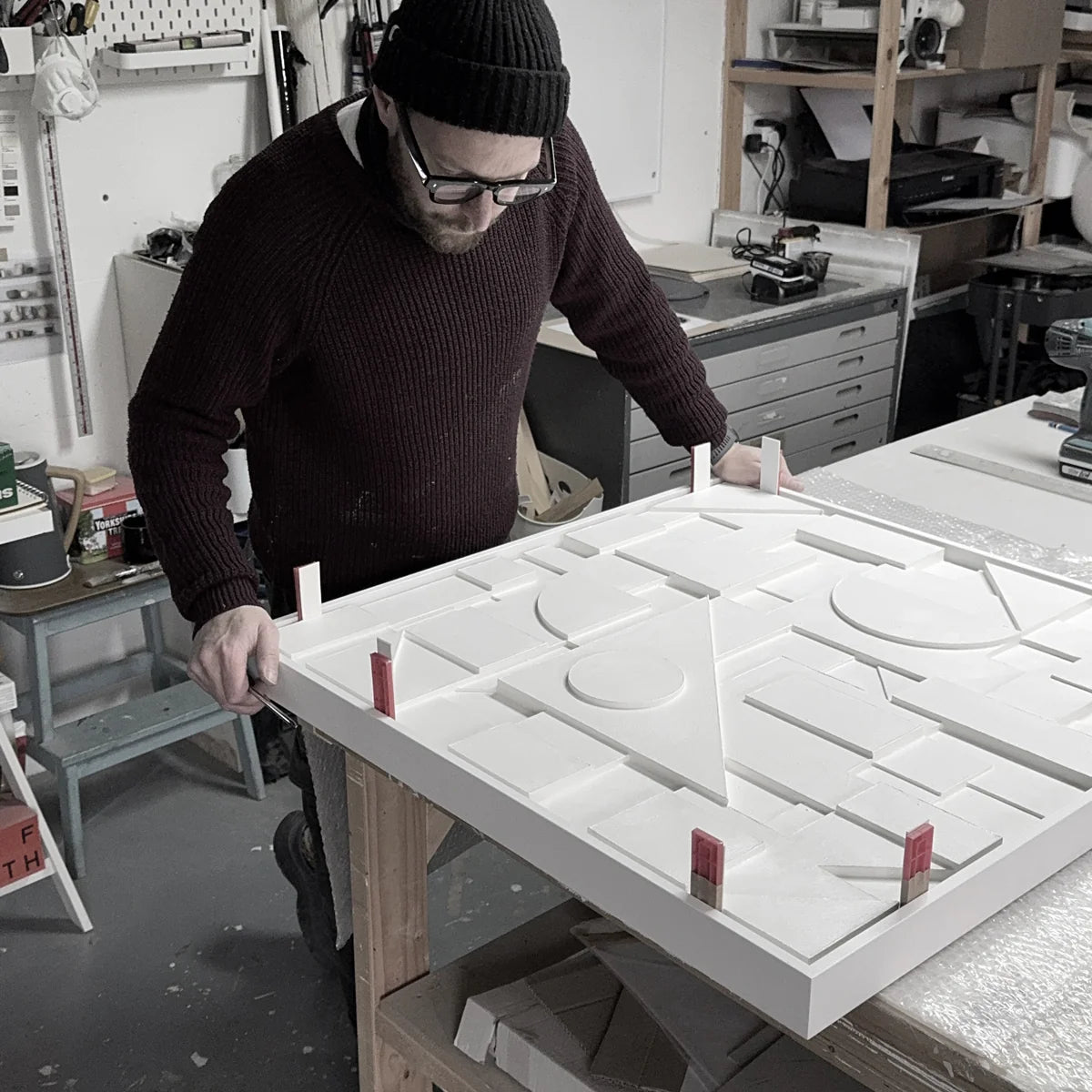 Inspired by Bauhaus, Brutalism, Scandinavian design, and mid-century modern aesthetics, Cambridgeshire-based artist Sean Thornhill creates bold, architectural wall reliefs and prints.