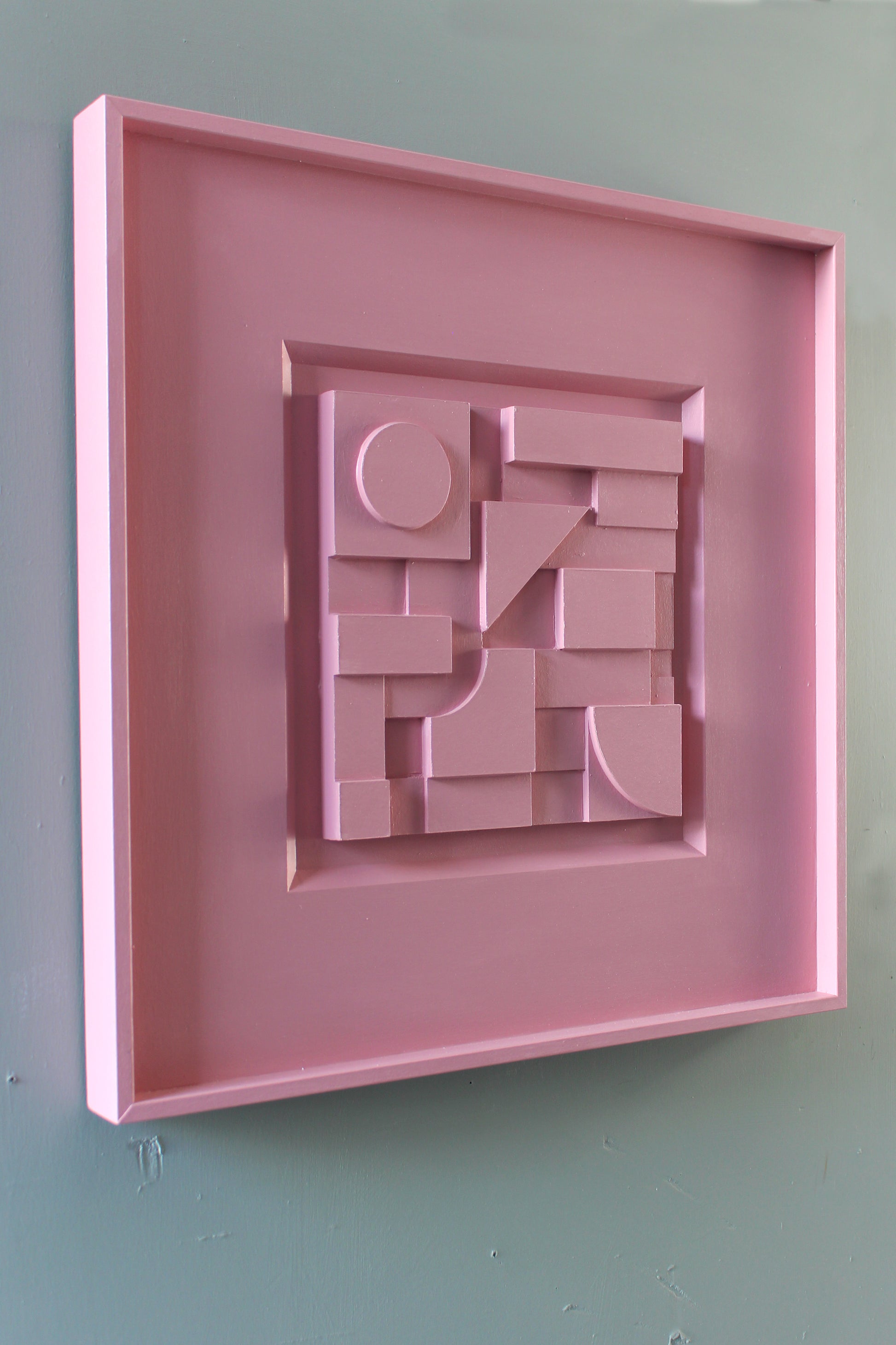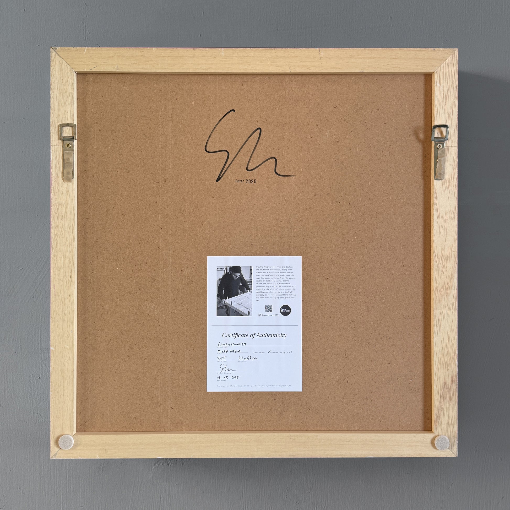 Composition189 is a handmade geometric relief painting, constructed using meticulously layered paper-based board. Each layer is shaped and arranged to create depth and dimension, then painted and sealed to ensure long-term protection and durability.