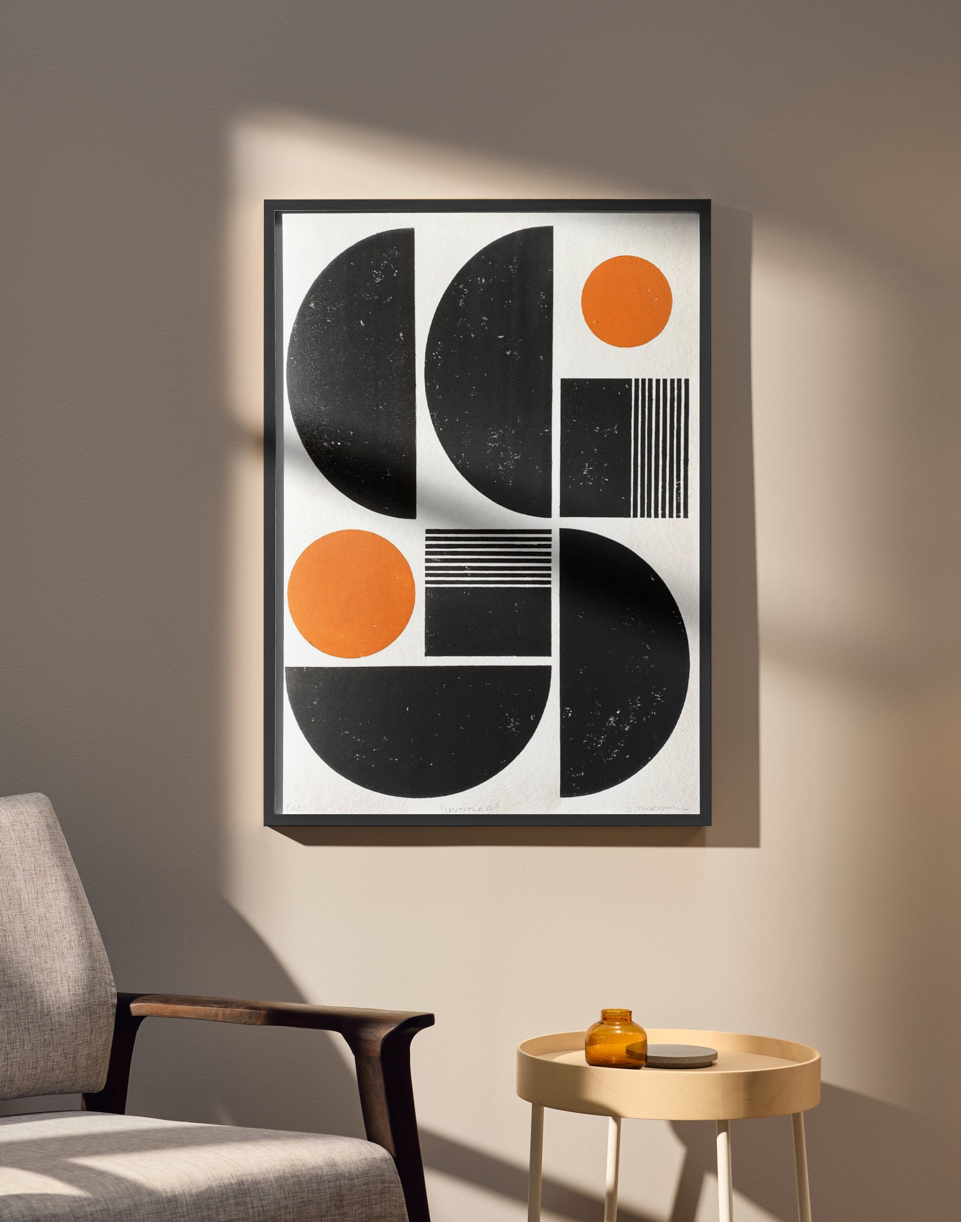 Bring handcrafted character into your space with this one-of-a-kind block print. Each piece is created using wooden shapes and oil-based ink, pressed onto premium 250gsm Fabriano paper.